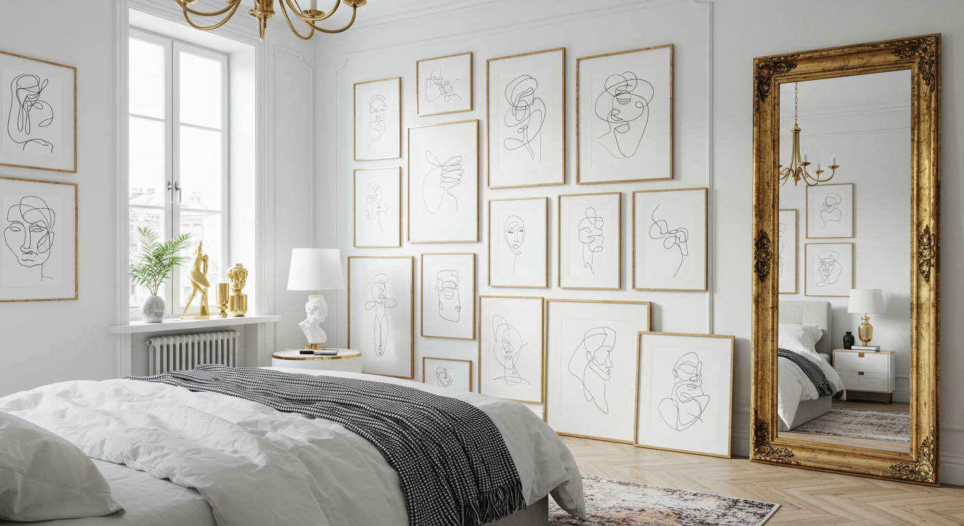 Add drama to a room with framed art. A collection of Christine’s favorite artifacts reside on her bedroom wall while a few rest aesthetically against it.
