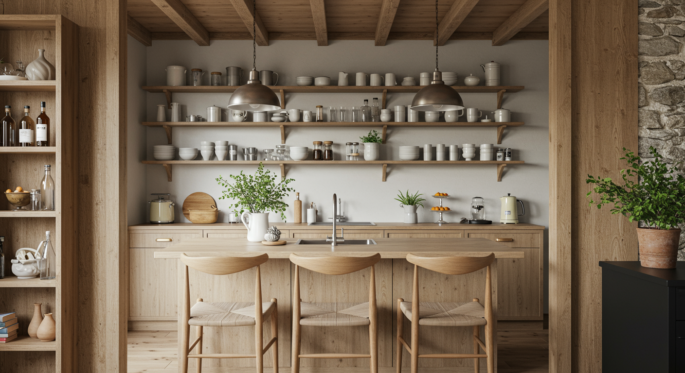 Opt for open shelving. Not only do kitchens with open storage — as opposed to boxy cabinetry — feel airier, they offer endless opportunities to stack, line and garnish the hub of your home with the quirky, collected knick knacks that can shine front and center.